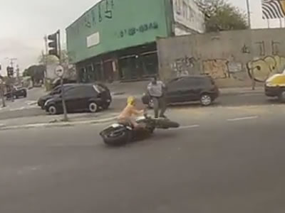 "Dei muita sorte de ter um policial ali naquela hora e bem posicionado", afirmou o motociclista. O segurança afirma que leva uma câmera em seu capacete para divulgar pela internet sua rotina e os passeios que faz.