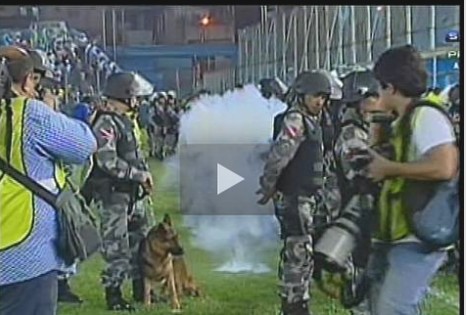 Durante a confusão com o jogo já interrompido, uma bomba de fabricação artesanal foi lançada ao campo, caindo aos pés de um dos policiais, vindo a explodir segundos depois.