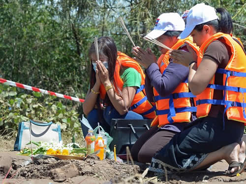 Parentes homenageiam vítimas da queda do avião no Laos, que matou 49 pessoas (Foto: Pornchai Kittiwongsakul/AFP)