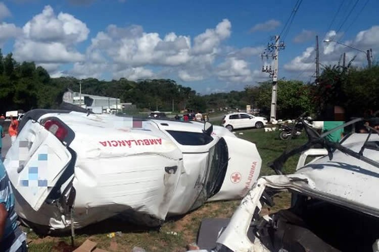 Ambulância capota, bate em veículos e deixa três mortos e três feridos