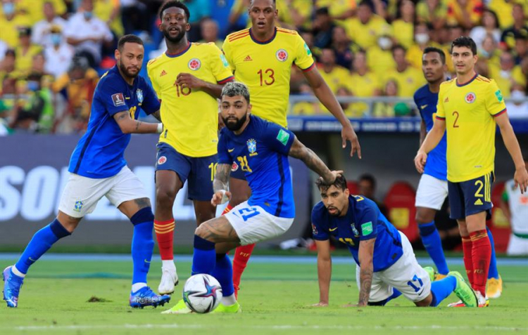 seleção brasileira ficou no empate sem gols com a Colômbia neste domingo, em Barranquilla, pelas Eliminatórias Sul-Americanas. A seleção de Tite apresentou desempenho ofensivo ruim, enquanto a defesa mostrou segurança. No primeiro tempo, o Brasil ameaçou no início em chute de Neymar, espalmado por Ospina, e em finalização de carrinho de Paquetá que foi para fora. Outra chance foi de Fred, da entrada da área, que também não foi na direção do gol. Na etapa final, a Colômbia dominou os primeiros minutos e exigiu boas defesas de Alisson em chutes de Uribe e Quintero, enquanto outra tentativa de Quintero foi na rede pelo lado de fora. O Brasil foi reagir apenas após Tite mandar Raphinha e Anthony a campo – cada um teve uma boa chance e ambas foram defendidas por Ospina. Com o resultado, a seleção brasileira segue na liderança das Eliminatórias Sul-Americanas com 28 pontos em dez jogos e próximo de garantir vaga na Copa do Mundo, enquanto a Colômbia ocupa o quinto lugar com 15 pontos, posição que lhe faria disputar uma repescagem contra adversário de outro continente para buscar a classificação para o torneio no Catar.