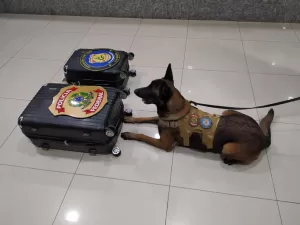O flagrante  foi feito durante ação de rotina com o auxílio da cadela farejadora, Mila. Exames preliminares realizados pelos policiais federais confirmaram a droga ocultada nas malas.