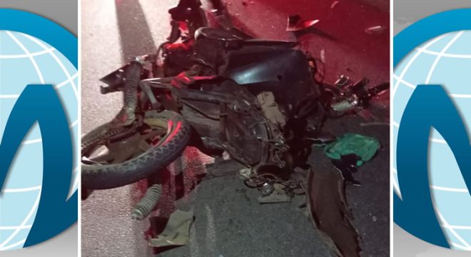 Moto de Danísio ficou bem estragada após o acidente em Barbalha