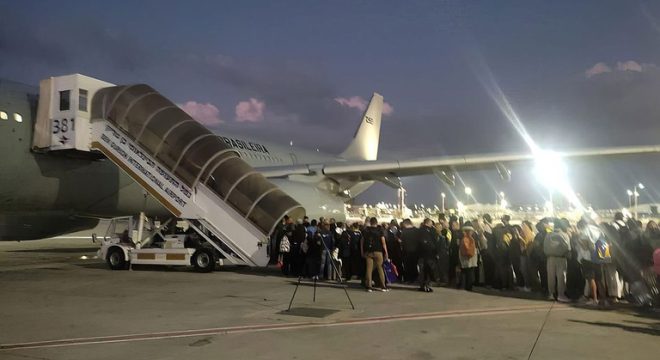 O quinto voo da operação aterrissou no Rio de Janeiro, no início da madrugada de domingo (15), com 215 brasileiros civis que retornaram da região de conflito no Oriente Médio.