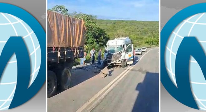 Topic que vinha para Juazeiro bate na traseira de caminhão e dois homens presos às ferragens