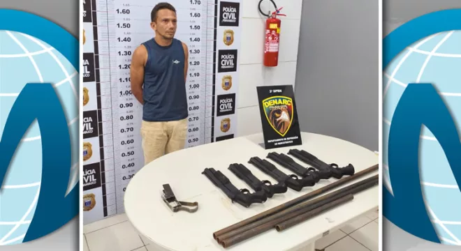 Um homem acusado de ser fabricante clandestino de armas em Juazeiro voltou a ser preso. Dessa vez, policiais civis do Ceará e do Pernambuco cumpriram Mandado de Prisão Preventiva e ainda ocorreu flagrante por conta de novos produtos fabricados por Fransuly dos Santos Silva, de 33 anos, o “Chuchu”. A ordem judicial foi expedida pela 2ª Vara Criminal da Comarca de Juazeiro por fabricação clandestina e comércio ilegal de armas de fogo tendo sido condenado a 6 anos de prisão.
